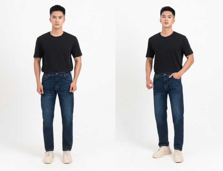 1. Sneaker trắng + quần jean xanh + áo thun basic
