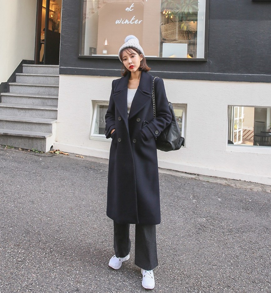Măng tô luôn là biểu tượng của sự thanh lịch vào mùa lạnh. Khi mix cùng quần ống rộng, đặc biệt là quần dạ hoặc kaki dáng suông, set đồ sẽ trở nên vô cùng trang nhã.