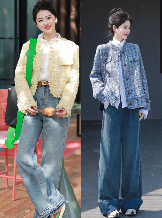 14. Quần ống rộng phối + Áo khoác tweed