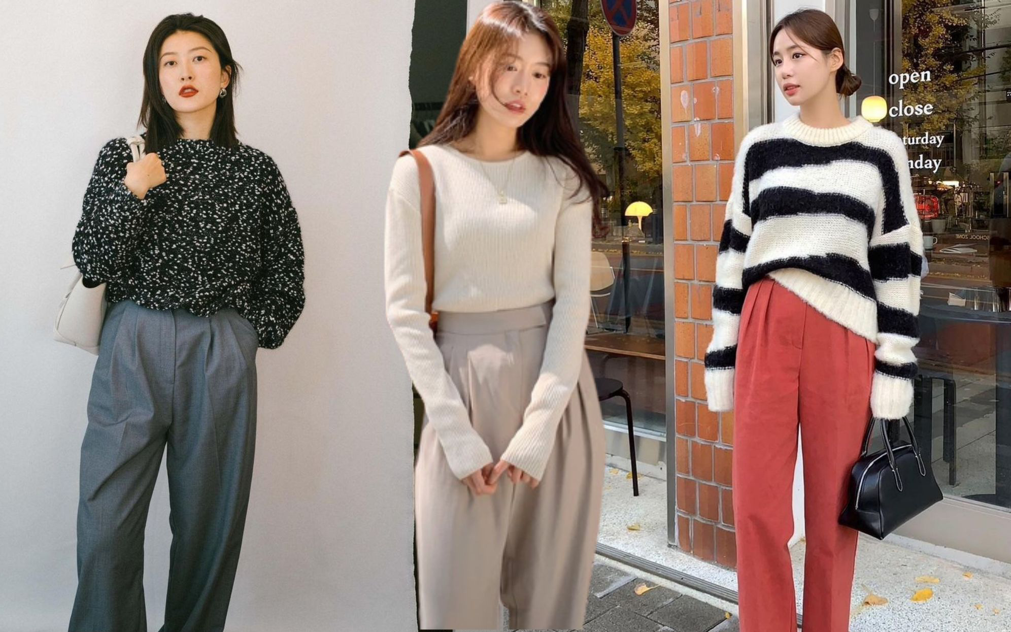 - 8. Quần ống rộng + Áo len ôm