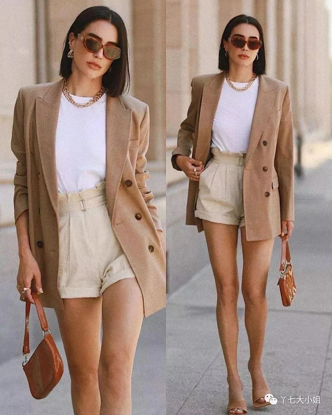 Sự kết hợp giữa quần short và blazer mang đến tổng thể hiện đại, thông minh và mang hơi hướng “power dressing” nhưng vẫn trẻ trung.