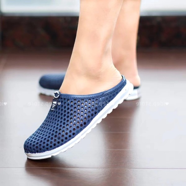 Một biến thể giữa giày và dép – kiểu dép bít mũi, hở gót với phần thân bằng lưới kỹ thuật là giải pháp tuyệt vời cho người vừa cần sự lịch sự vừa muốn thông thoáng. Lưới giúp chân không bí, trong khi phần bít mũi giúp bạn giữ được hình ảnh gọn gàng.