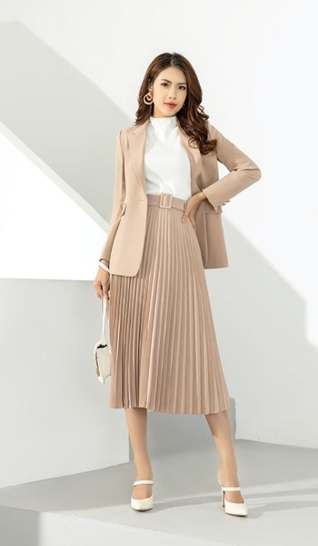 Q: Có thể mặc chân váy xếp ly dài đi làm không?
