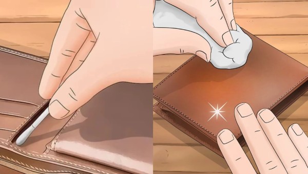 Nhúng khăn mềm vào dung dịch xà phòng, vắt ráo nước rồi lau nhẹ bề mặt da theo chuyển động tròn đều, từ một đầu đến hết bề mặt sản phẩm.