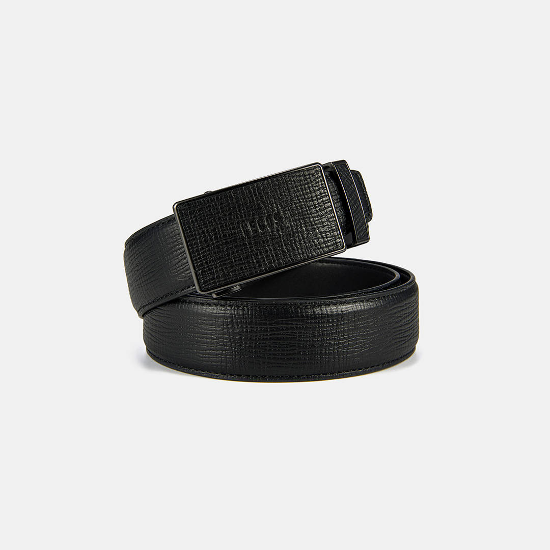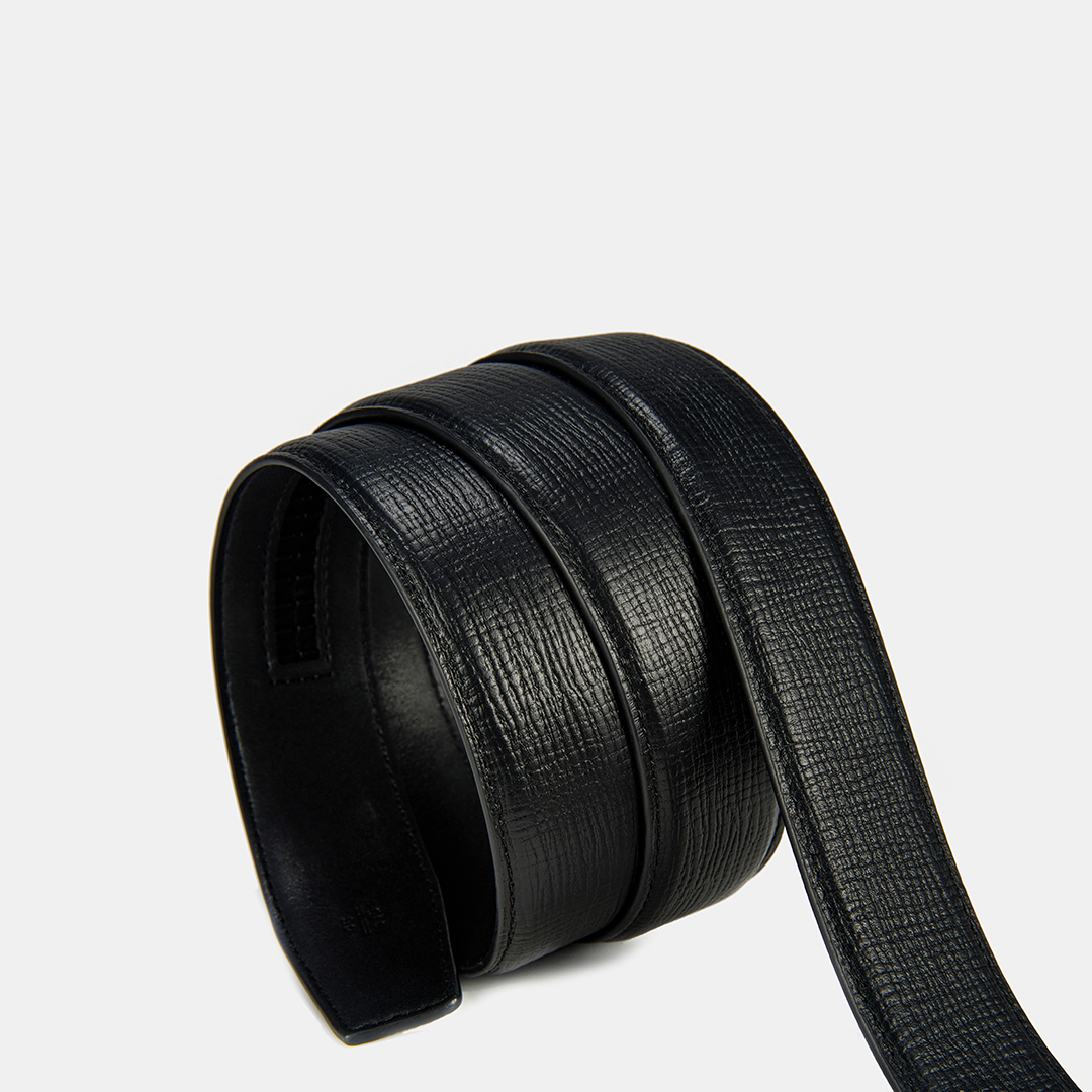 Dây lưng sử dụng chất liệu da thật cao cấp, bề mặt được dập vân sọc đều tay, tạo hiệu ứng thị giác mạnh mẽ