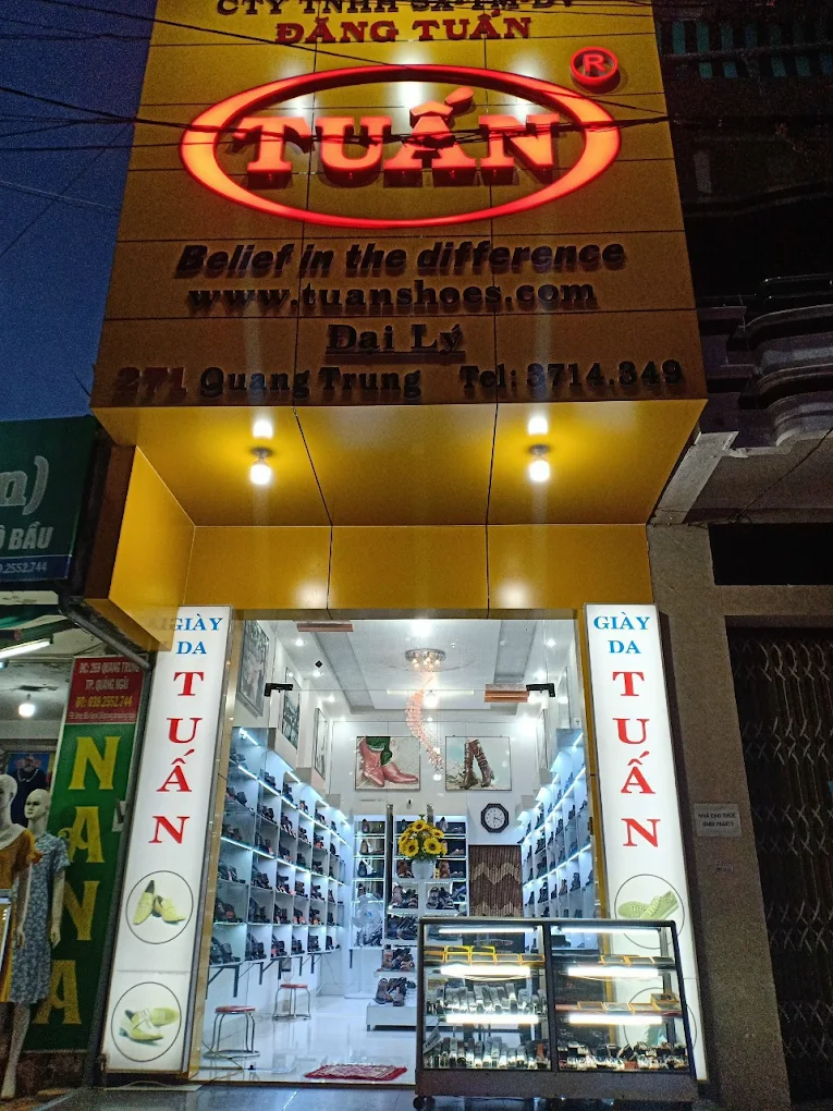 Giày Tuấn là địa chỉ quen thuộc với nhiều người dân Quảng Ngãi, chuyên cung cấp các mẫu giày da công sở, giày lười và giày mọi nam nữ.