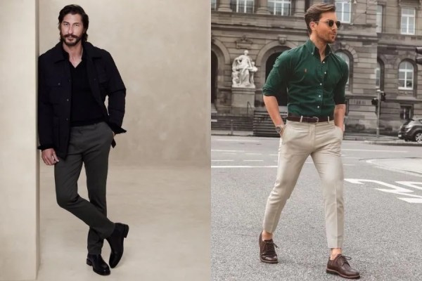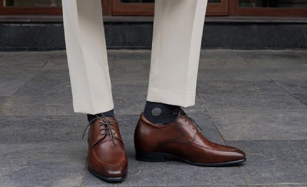 Nên chọn form giày dáng thon, đế mỏng vừa phải để tạo sự nhẹ nhàng, tránh cảm giác nặng nề, thô cứng. Đi kèm với tất tối màu (đen hoặc navy), áo sơ mi trắng hoặc xanh nhạt – tổng thể set đồ sẽ vừa chững chạc, vừa hiện đại.