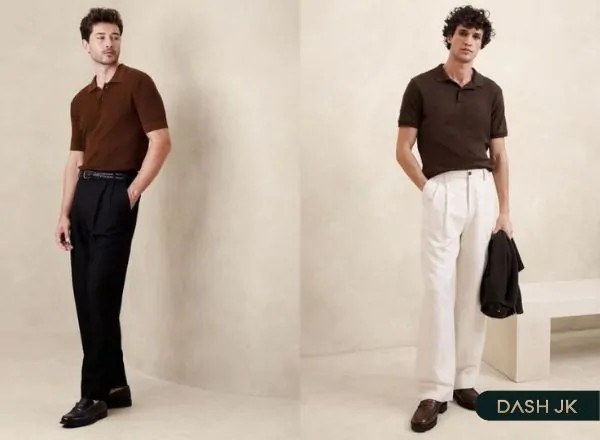 Kết hợp với quần kaki và áo polo hoặc áo len mỏng: Phong cách smart-casual này rất phù hợp với môi trường văn phòng trẻ trung, start-up, hoặc những buổi đi chơi không cần quá nghiêm túc.