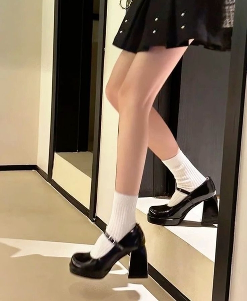 Các phiên bản Mary Jane đế chunky mang lại vẻ ngoài nổi bật. Khi phối cùng váy ngắn hoặc trang phục tối giản, tổng thể trở nên ấn tượng hơn. Sự kết hợp này tạo nên nét cá tính nhưng vẫn giữ được sự tinh tế. Đây là minh chứng cho khả năng biến hóa linh hoạt của Mary Jane.