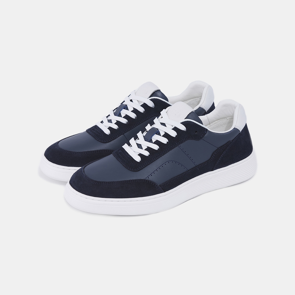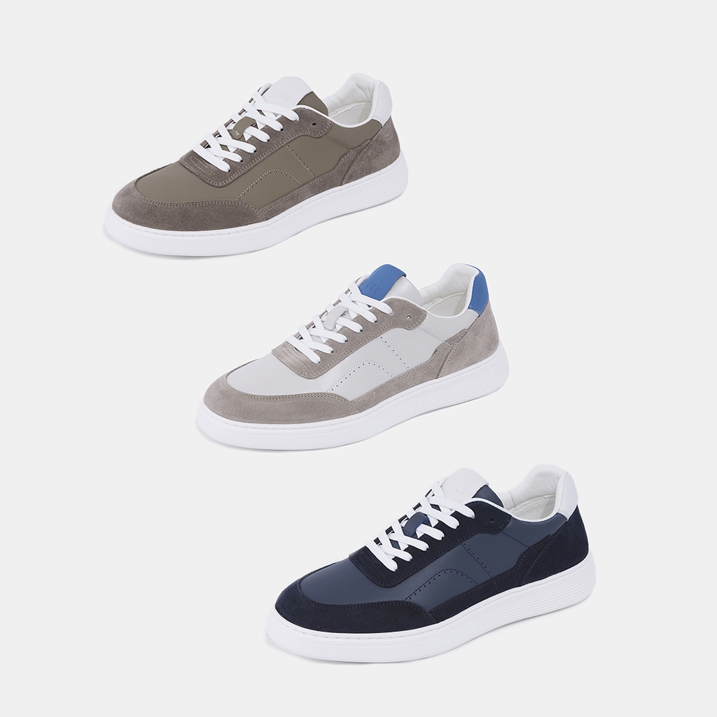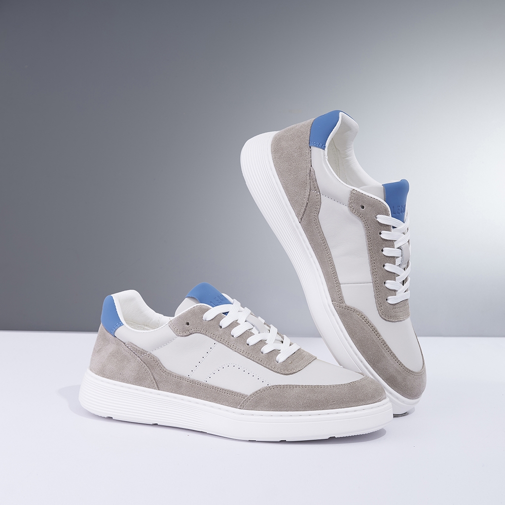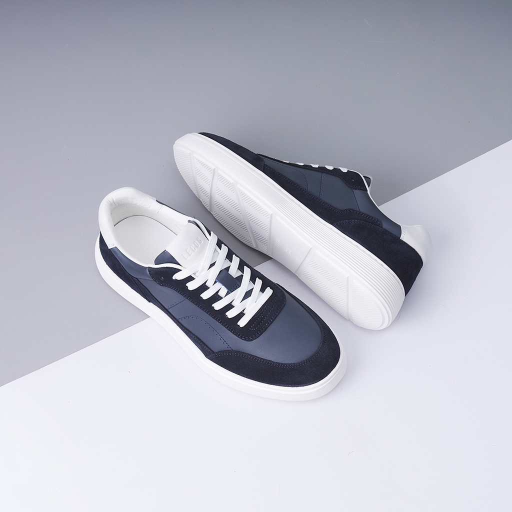 Giày sneaker nam thiết kế hiện đại với phom dáng gọn gàng, phối da trơn và da lộn cao cấp, dễ phối đồ và phù hợp cho nhiều hoàn cảnh sử dụng.