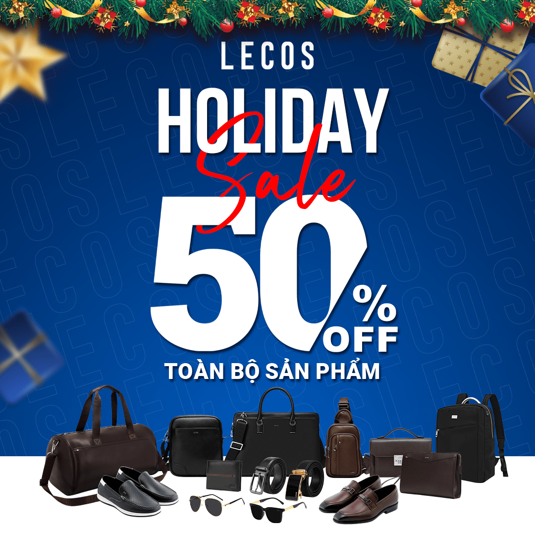 Chuẩn bị cho mùa lễ hội cùng các bữa tiệc cuối năm với đại tiệc mua sắm Holiday Sale tại LECOS - thương hiệu phụ kiện thời trang nam cao cấp hàng đầu Việt Nam. SIÊU KHUYẾN MÃI - GIẢM GIÁ 50% toàn bộ sản phẩm túi xách, clutch, balo, ví da, dây lưng, giày, kính mắt. Những mẫu thiết kế phong cách lịch lãm, sang trọng và đầy cuốn hút của thời trang Pháp cùng chất liệu da thật cao cấp nhập khẩu từ Italia.