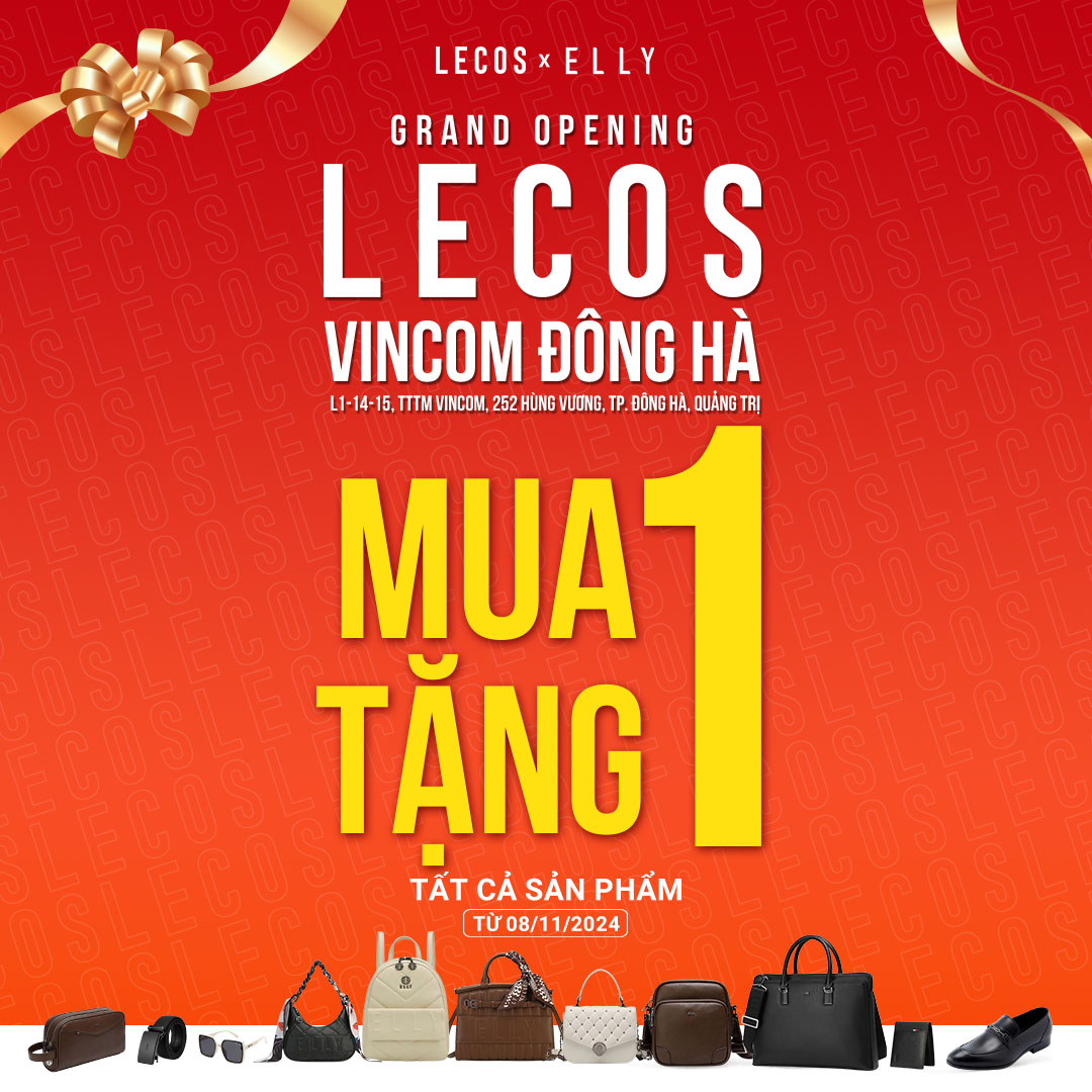 Từ ngày 08/11/2024, LECOS - Thương hiệu phụ kiện thời trang Nam cao cấp hàng đầu Việt Nam mang đậm dấu ấn của kinh đô thời trang Pháp thanh lịch với chất liệu da thật từ Italia chính thức khai trương Showroom tại Quảng Trị ở địa chỉ L1-14-15, Tầng 1, TTTM Vincom Plaza Đông Hà, Số 252 Hùng Vương, Phường Đông Lương, TP. Đông Hà, Quảng Trị cùng siêu khuyến mãi MUA 1 TẶNG 1 tất cả sản phẩm.