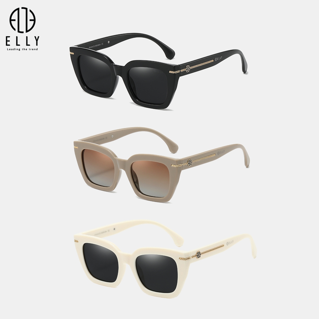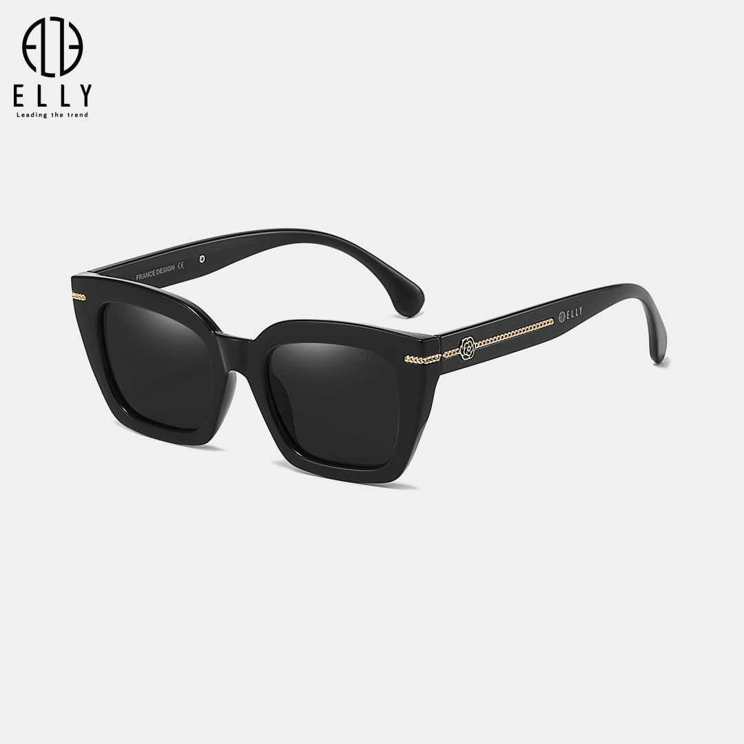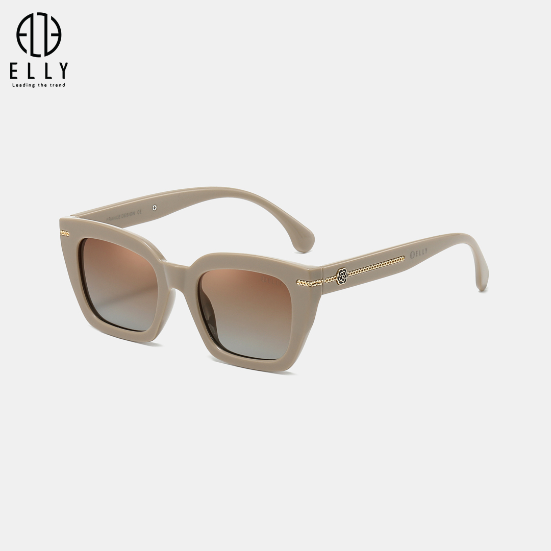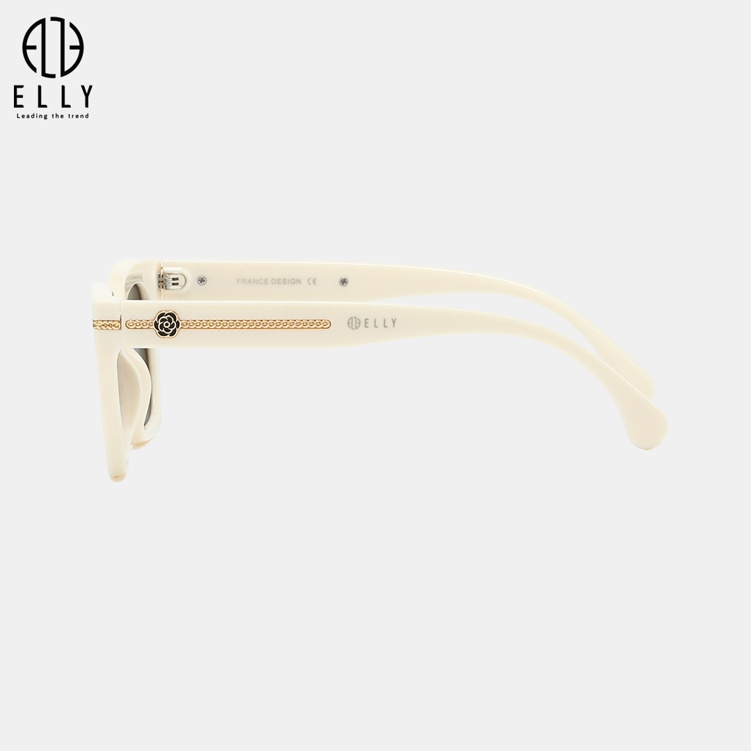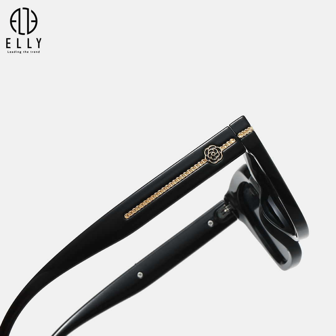 Tên thương hiệu ELLY được khắc trên mắt kính và gọng kính, khẳng định giá trị và tính chính hãng của sản phẩm