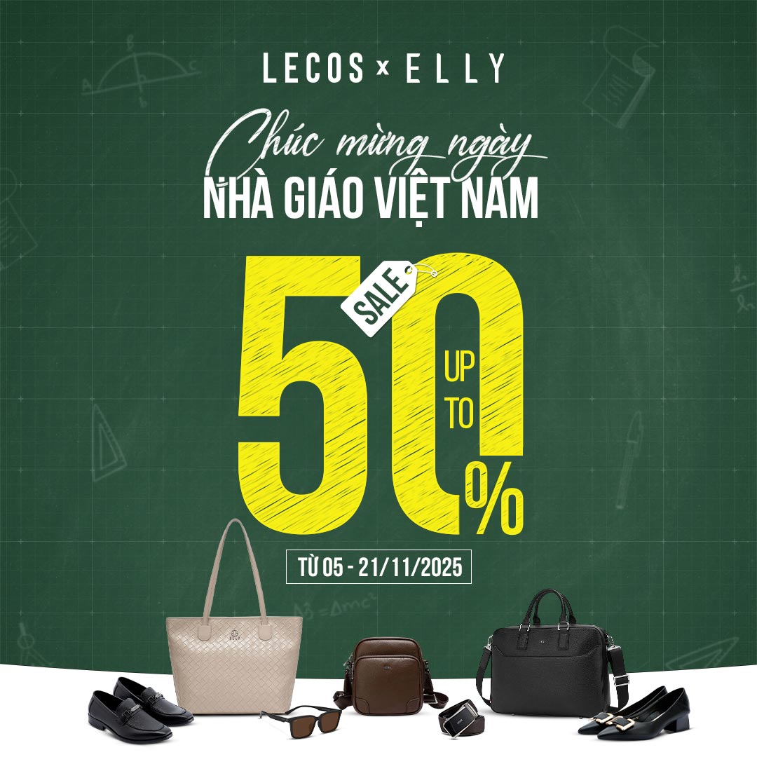 Tôn vinh những người “gieo mầm tri thức” bằng món quà tinh tế. LECOS & ELLY mang đến loạt Quà Tặng Tri Ân đậm phong cách Pháp – thanh lịch, sang trọng và đầy cảm xúc cùng ưu đãi hấp dẫn SALE UP TO 50% toàn bộ sản phẩm túi xách, balo, ví da, dây lưng, clutch, giày, kính mắt,... trên toàn hệ thống.