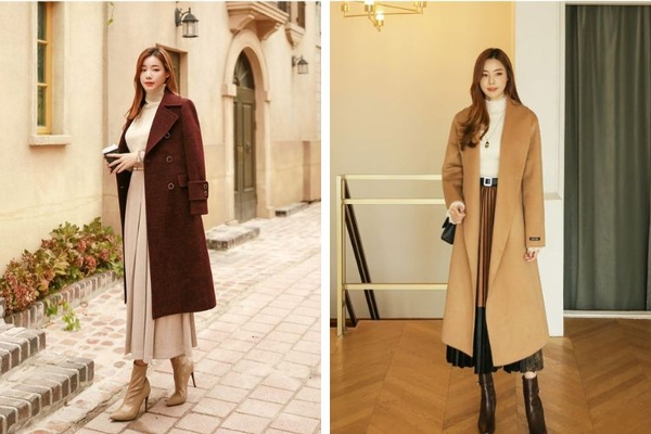 Bạn nên chọn áo khoác có màu sắc trung tính như be, camel, đen hoặc xám. Chiều dài áo khoác nên tương đương hoặc dài hơn chân váy một chút để tạo hiệu ứng layer đẹp mắt.