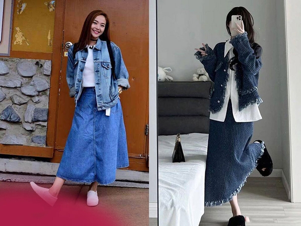 Bạn có thể chọn áo khoác denim dáng ngắn để tôn chiều cao hoặc dáng dài để tạo hiệu ứng layer thú vị. Áo khoác denim đi cùng chân váy dài chữ A có thể vừa khiến bạn trông trẻ trung, năng động lại vừa tôn dáng.