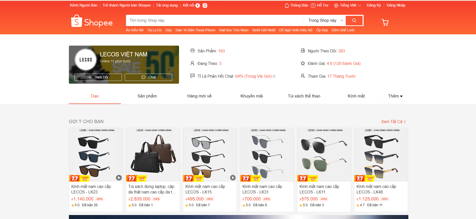 Dễ dàng nhận diện: Các gian hàng chính hãng thường có logo LECOS, dấu tích xác nhận chính hãng từ sàn, và được đánh giá cao bởi cộng đồng người dùng.