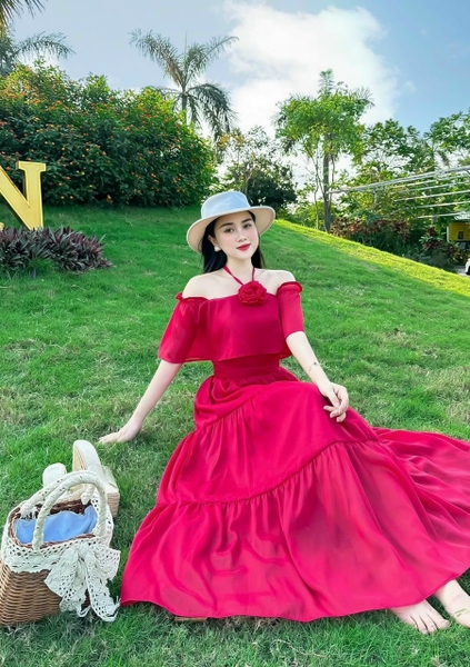 Đầm trễ vai mang lại vẻ ngoài mềm mại và nữ tính. Tuy nhiên, nên chọn thiết kế vừa phải, không quá hở để giữ sự tinh tế. Kiểu đầm này rất phù hợp cho những buổi dạo biển buổi chiều hoặc chụp ảnh.
