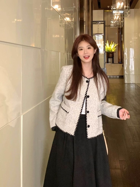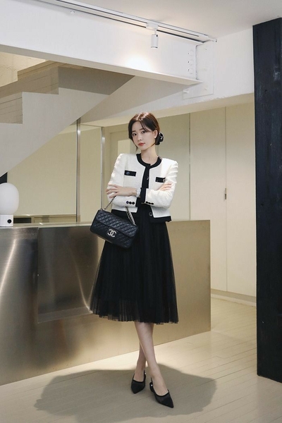 Chất liệu tweed có phần cứng cáp, vì vậy khi kết hợp cùng chân váy lụa hoặc voan sẽ tạo nên sự đối lập thú vị. Tổng thể trở nên mềm mại và cuốn hút hơn. Đây là lựa chọn lý tưởng cho những buổi hẹn nhẹ nhàng hoặc sự kiện ban ngày. Nàng vẫn giữ được nét sang trọng nhưng không quá nghiêm túc.