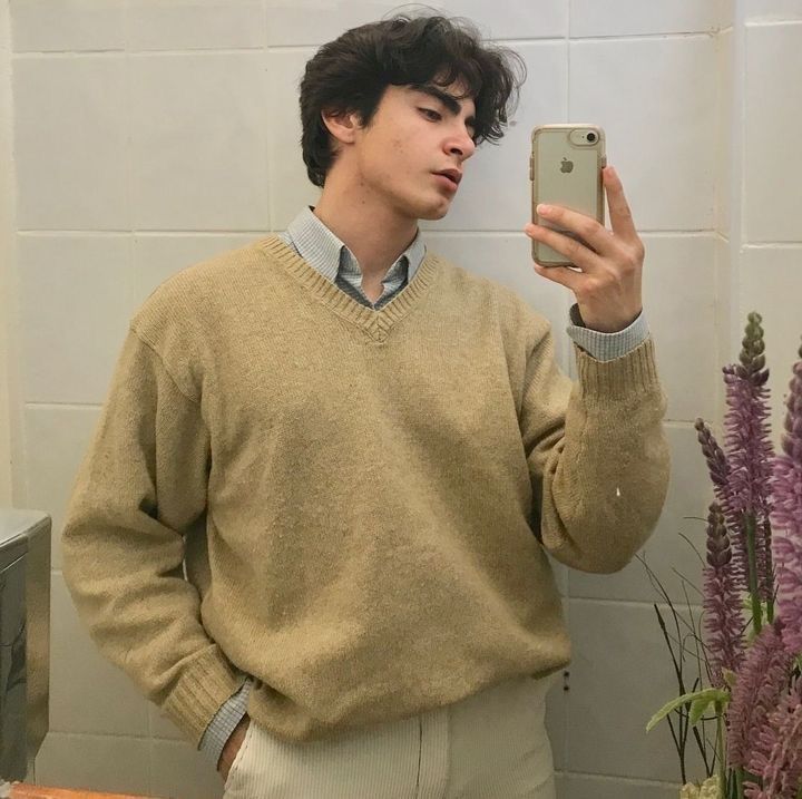 Nếu muốn casual hơn, bạn có thể thay áo len cổ tim bằng cardigan, kết hợp cùng sơ mi caro nhỏ và quần jeans tối màu. Đây là lựa chọn lý tưởng cho những buổi hẹn cà phê hay dạo phố mùa thu, vẫn giữ tinh thần Preppy mà không gò bó.