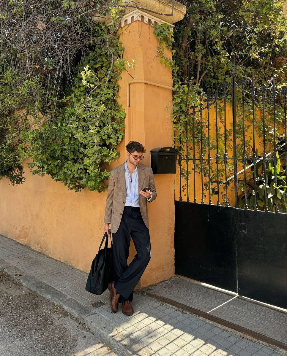Một lựa chọn hoàn hảo cho những buổi gặp gỡ trang trọng. Blazer màu xám tro hoặc nâu nhạt, phối cùng sơ mi xanh nhạt và quần âu tông trung tính giúp tổng thể vừa trưởng thành vừa thanh lịch. Hãy thêm chiếc túi xách da hoặc kính mắt thời trang để tạo điểm nhấn Preppy đúng điệu.