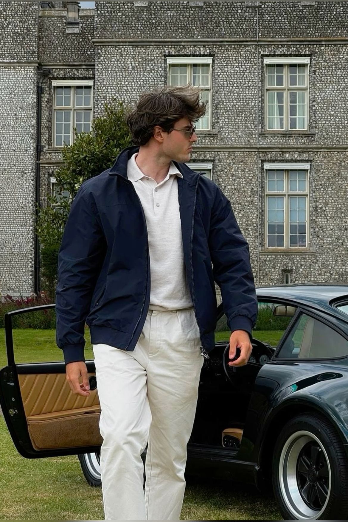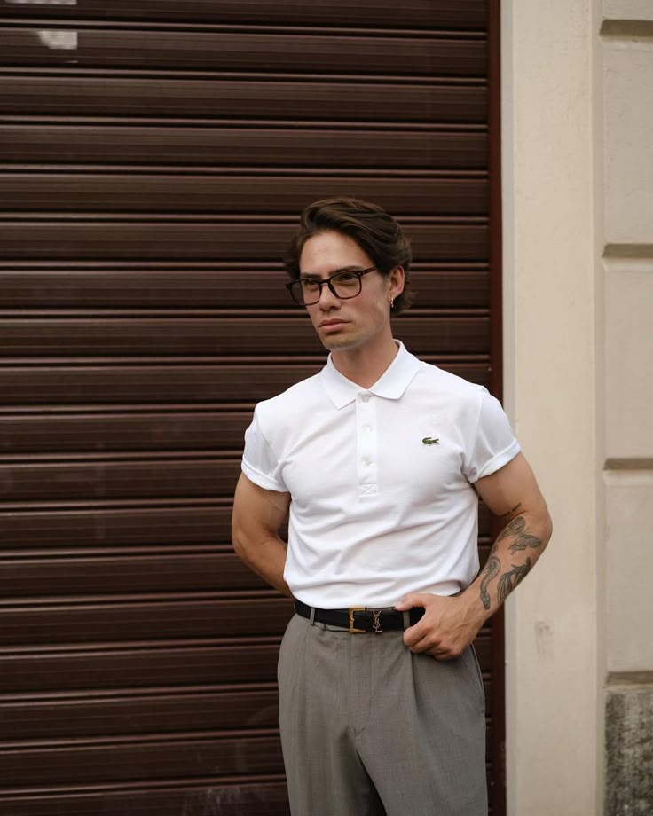 Phong cách này mang hơi hướng thể thao nhẹ, rất phù hợp cho môi trường công sở hoặc dạo phố cuối tuần. Chọn áo polo màu pastel hoặc trắng, phối cùng quần chinos xanh navy, thêm giày loafer nâu và đồng hồ da, bạn sẽ có vẻ ngoài vừa gọn gàng vừa cuốn hút.
