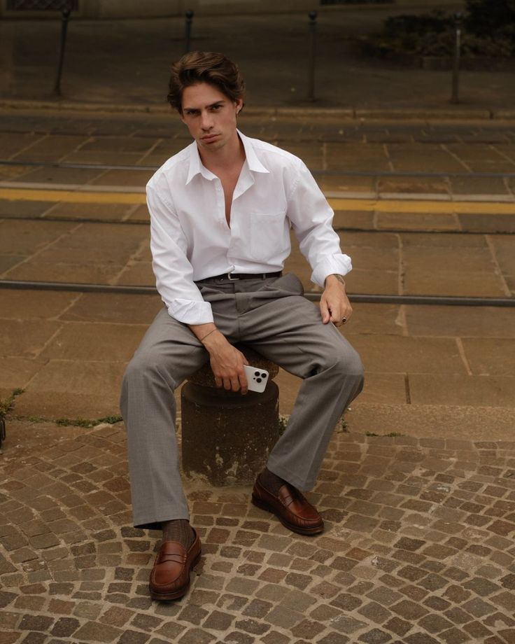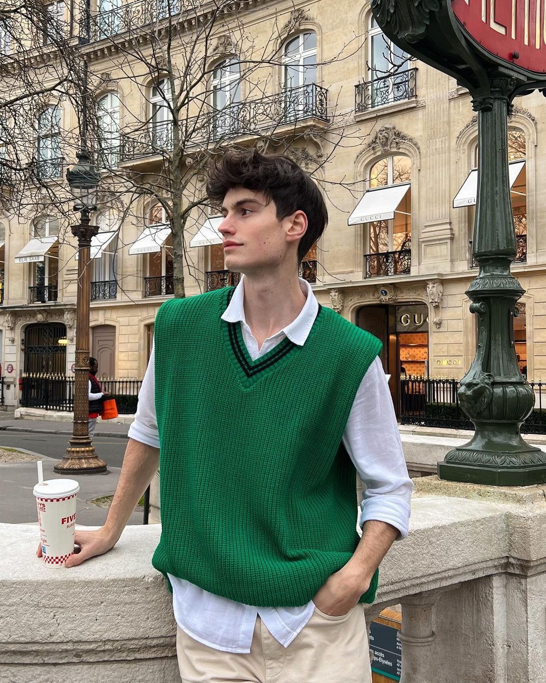 Nếu bạn theo đuổi phong cách cổ điển mang hơi thở quý ông Anh quốc, hãy thử kết hợp áo gile cùng quần kaki và giày Oxford. Outfit này vừa lịch lãm vừa có chiều sâu, gợi nhớ đến phong thái điềm đạm và chỉn chu của những quý ông xưa, nhưng vẫn giữ được nét hiện đại đầy cuốn hút.