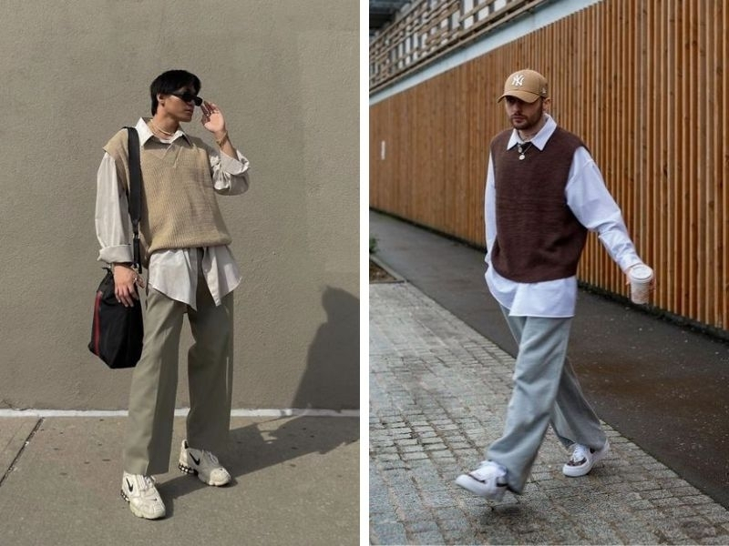 Cách phối này mang hơi hướng học đường cổ điển, vừa nhẹ nhàng vừa dễ ứng dụng. Sự kết hợp giữa gile len và sơ mi caro giúp tổng thể vừa có chiều sâu, vừa gợi nên cảm giác gần gũi. Khi đi cùng giày Oxford, outfit sẽ trở nên hoàn hảo cho môi trường công sở sáng tạo hoặc những buổi dạo chơi cuối tuần.