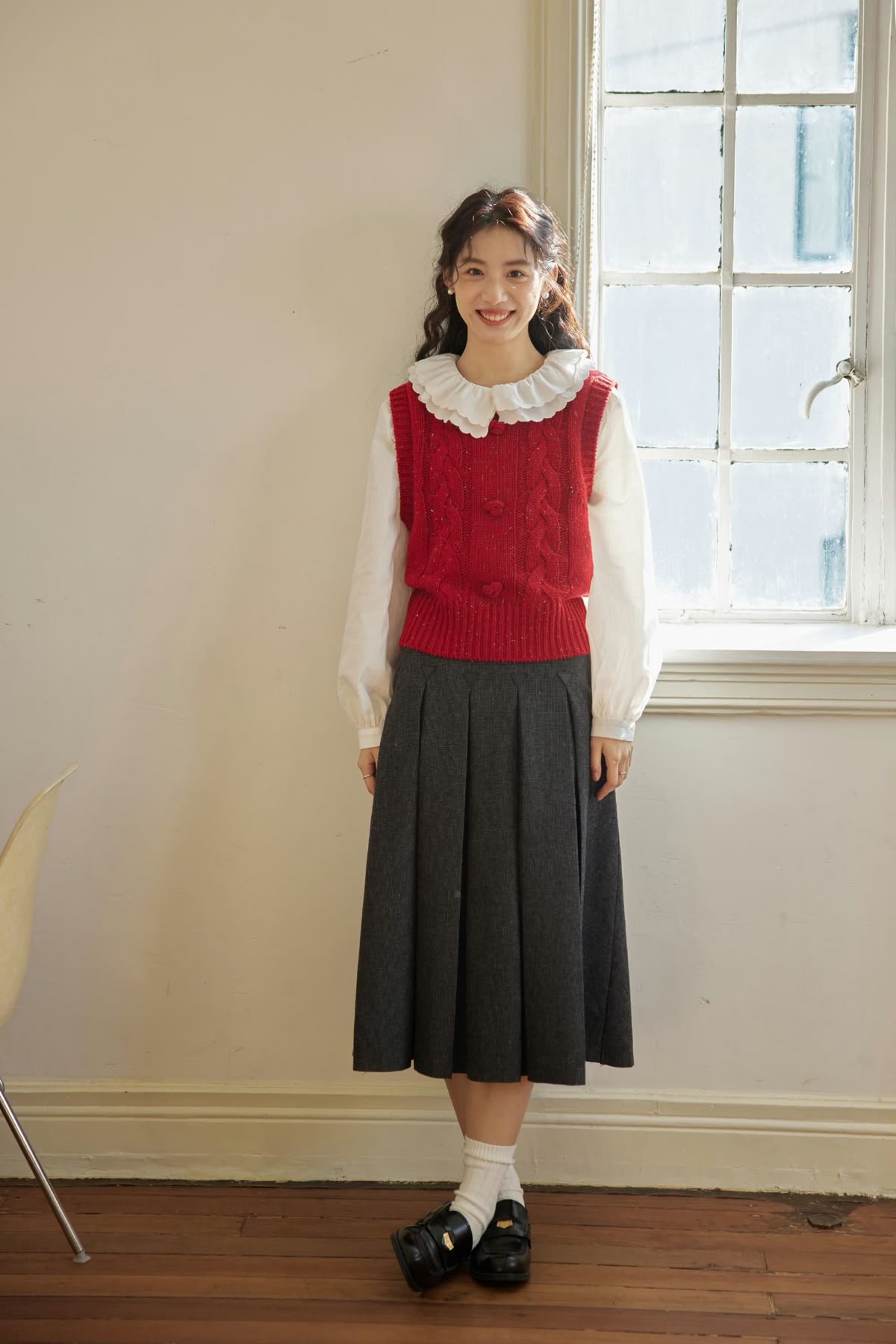 Áo len dệt kim cổ điển: Mix cùng váy dài họa tiết hoặc quần ống rộng, đi kèm giày búp bê hoặc loafer.