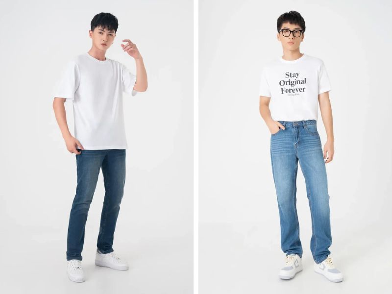 Một combo quen thuộc nhưng luôn hiệu quả. Áo phông trắng hoặc đen oversize kết hợp cùng quần jeans mang lại vẻ năng động, tự do, thích hợp cho cả nam lẫn nữ. Có thể thêm giày sneaker chunky và túi xách tay da thật để hoàn thiện vẻ ngoài trẻ trung.