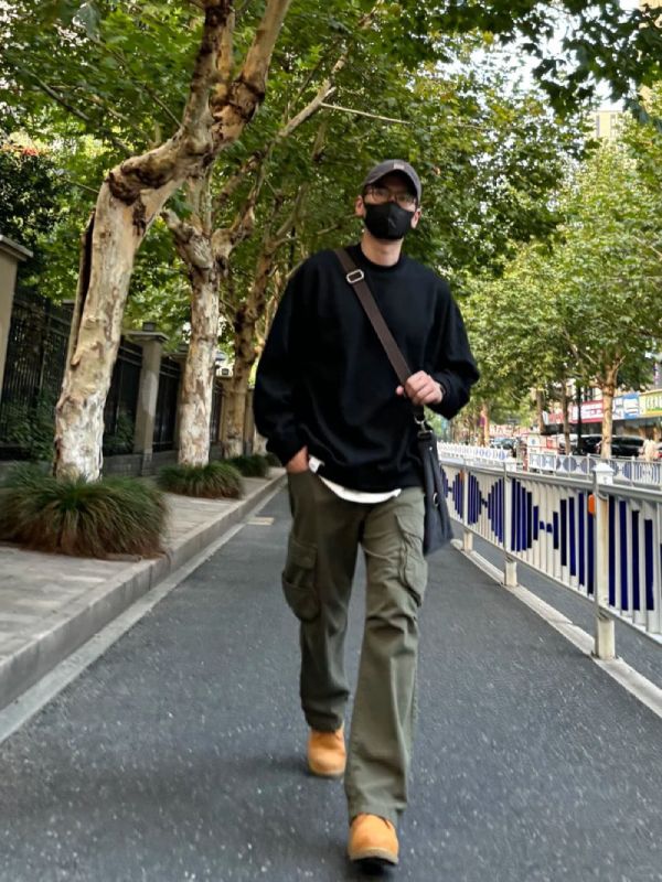 Kết hợp quần cargo với áo phông basic hoặc áo thun tay dài đơn sắc là lựa chọn an toàn. Sự đơn giản giúp cân bằng lại thiết kế nhiều chi tiết của quần, tạo nên tổng thể hài hòa. Phong cách này phù hợp cho những buổi dạo phố hoặc gặp gỡ bạn bè, mang lại cảm giác nhẹ nhàng nhưng vẫn rất nam tính.