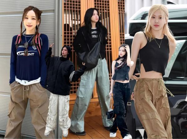 4. Quần cargo + áo croptop (nữ tính, hiện đại)