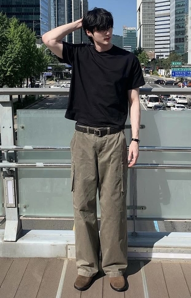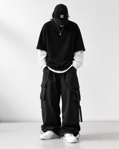 Sự kết hợp giữa quần cargo và áo thun basic là lựa chọn đơn giản nhưng luôn hiệu quả. Outfit này mang lại vẻ ngoài trẻ trung, năng động và phù hợp trong hầu hết hoàn cảnh. Bạn có thể chọn áo form rộng để tăng chất streetwear hoặc áo ôm để tạo sự gọn gàng.