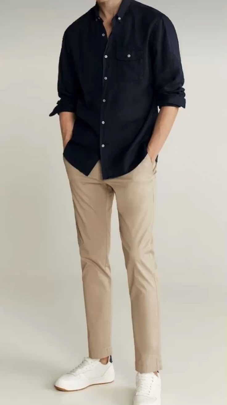 Áo xám thanh lịch: Kết hợp quần be với áo xám tạo nên tổng thể nhẹ nhàng, hiện đại và rất "smart casual".