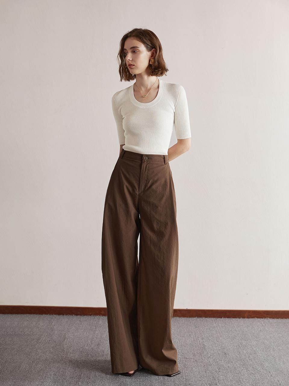 Đây là bộ đôi kinh điển, không bao giờ lỗi mốt. Màu trắng/kem mang lại sự tươi sáng, thanh lịch, làm nổi bật sắc nâu của quần.