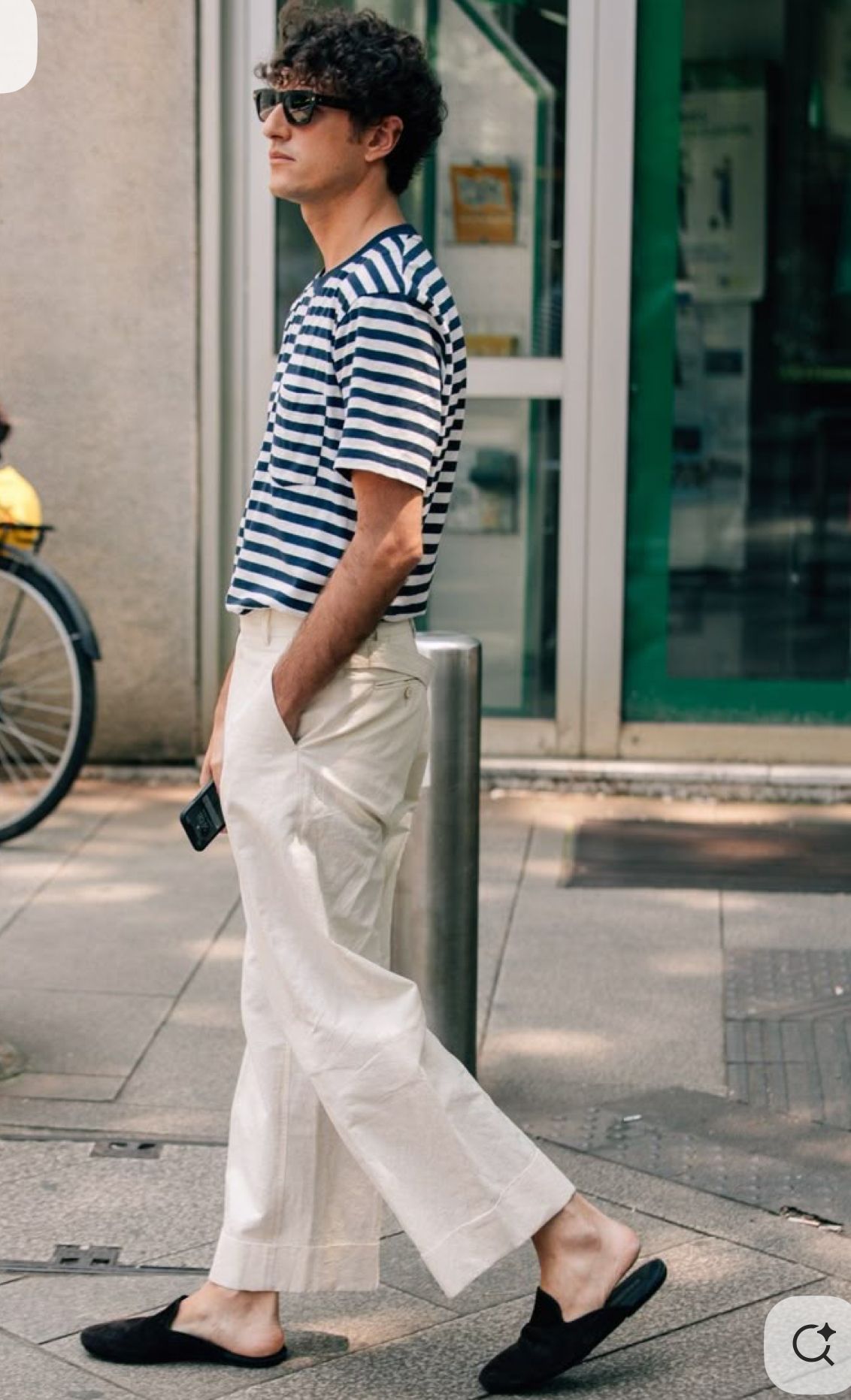 Một chút cổ điển, một chút phóng khoáng. Áo phông kẻ ngang (đặc biệt là kẻ sọc đen trắng hoặc xanh trắng) khi phối với quần trắng sẽ mang đến vẻ ngoài trẻ trung, hiện đại.