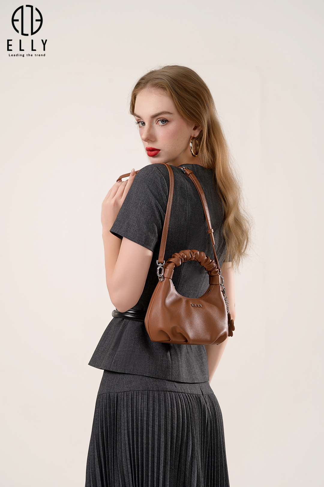 Đậm dấu ấn thương hiệu: Logo ELLY tinh tế được gắn phía trước, khẳng định giá trị của một phụ kiện thời trang cao cấp