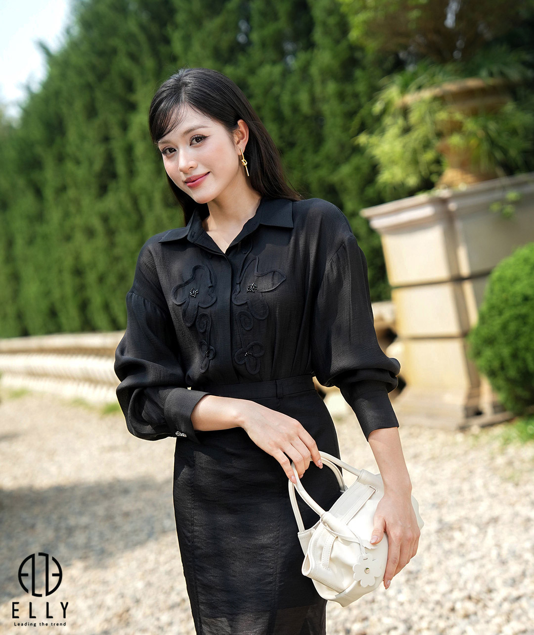 Mặt trước gắn logo ELLY tinh xảo thể hiện dấu ấn thương hiệu sang trọng