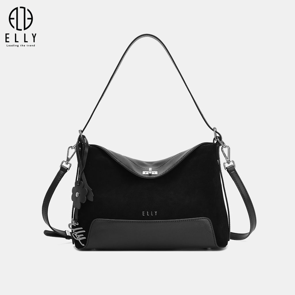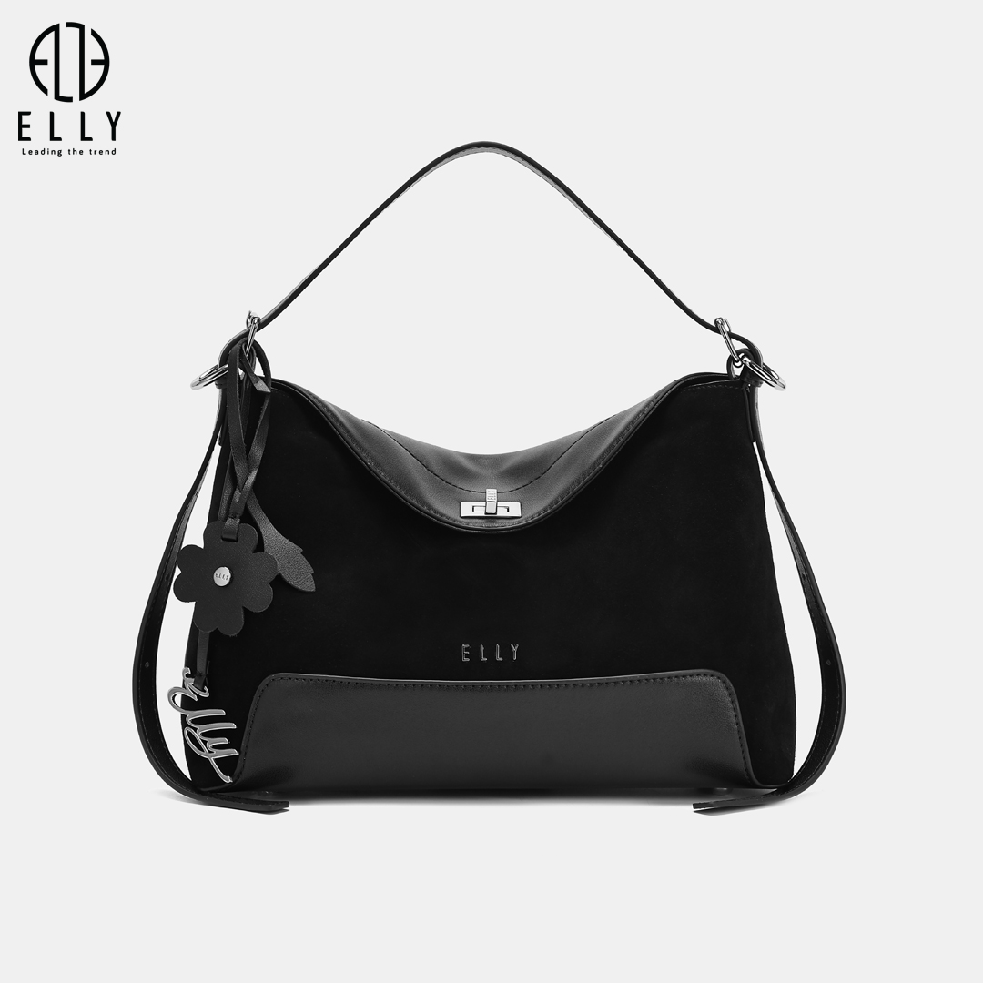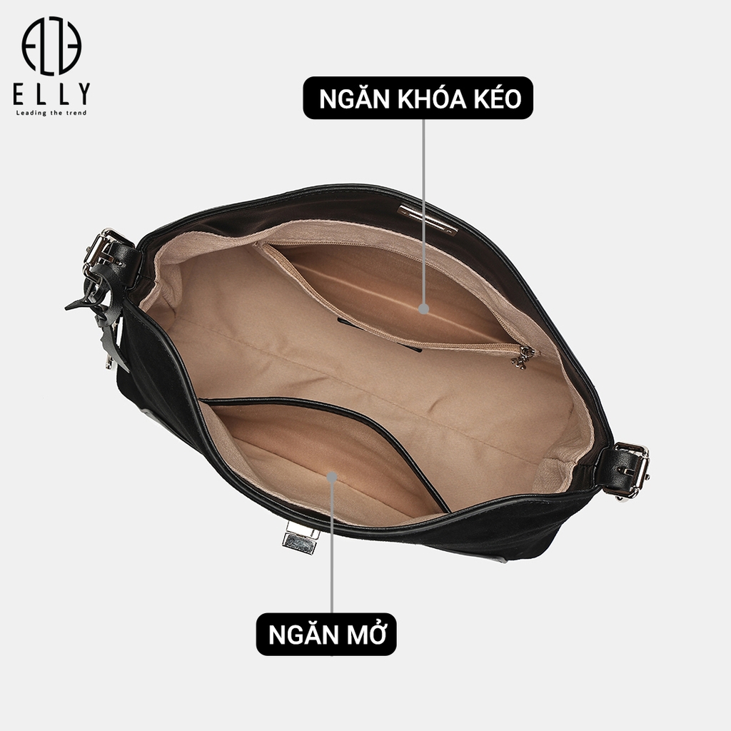 Chốt khóa kim loại sáng bóng khắc logo ELLY tinh tế, thiết kế chắc chắn giúp đóng mở dễ dàng và tăng thêm vẻ sang trọng cho tổng thể chiếc túi.