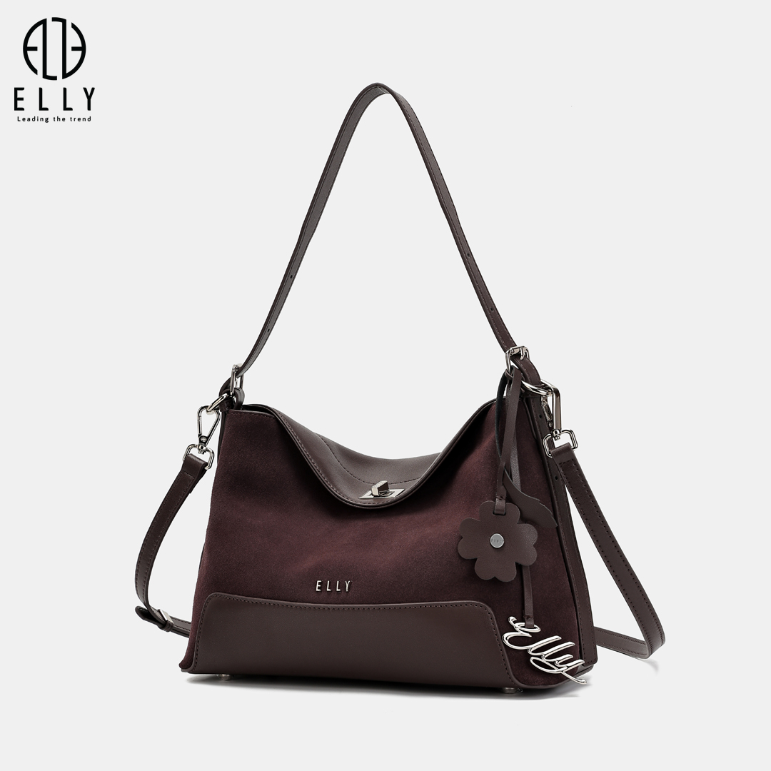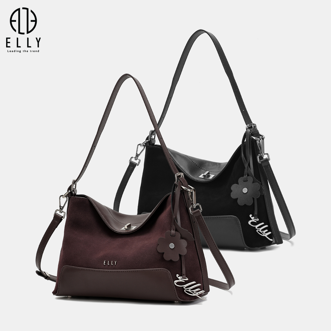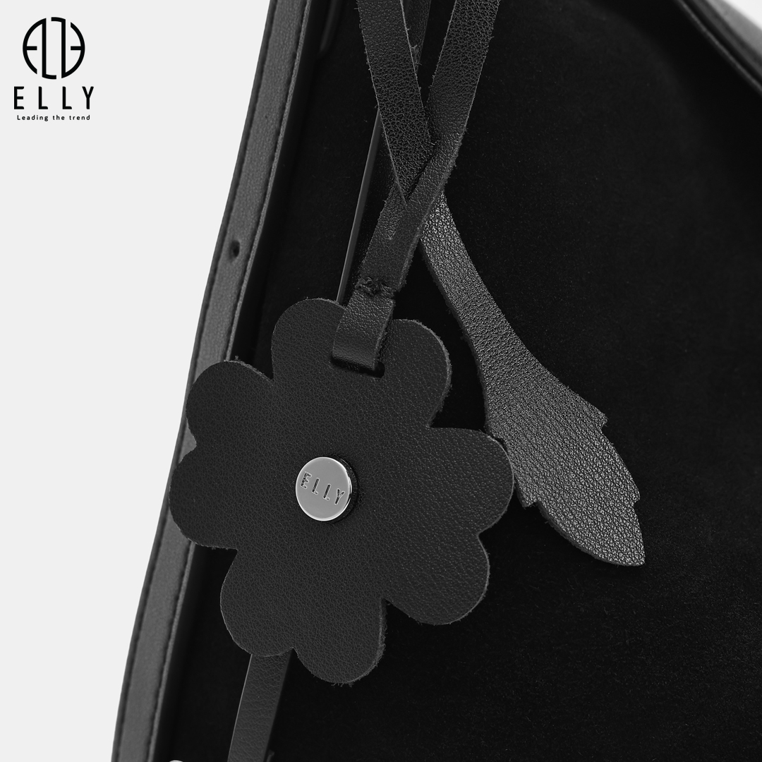 Túi được nhấn nhá với tag da hình hoa lá mềm mại cùng tag treo chữ ELLY kim loại nổi bật, tạo điểm nhấn tinh tế và tăng thêm nét duyên dáng cho thiết kế.