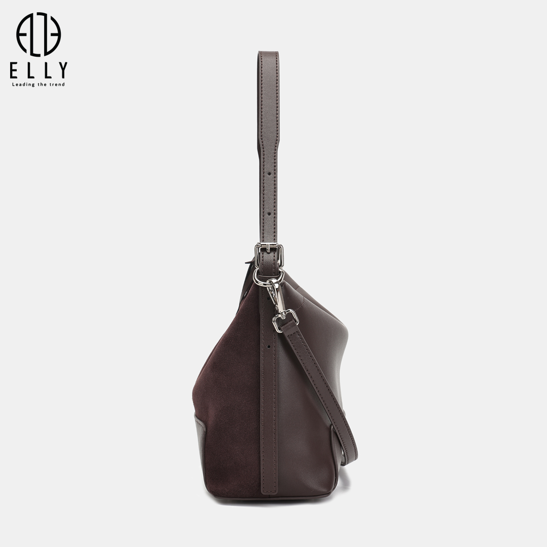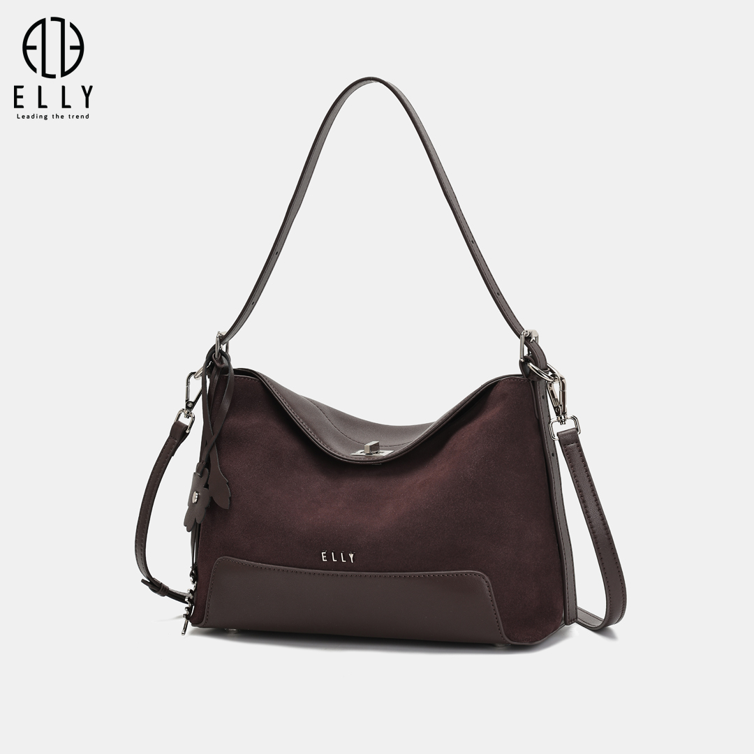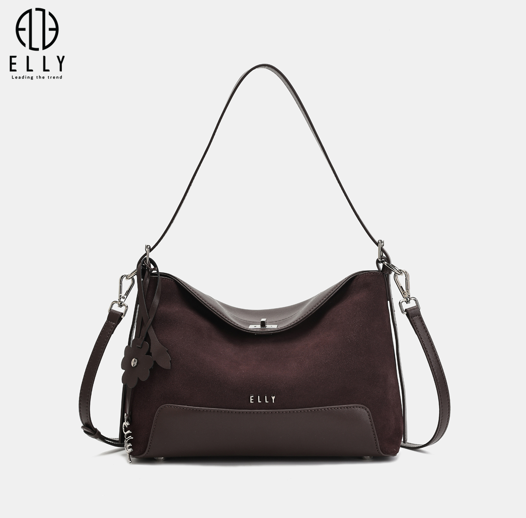 Túi được nhấn nhá với tag da hình hoa lá mềm mại cùng tag treo chữ ELLY kim loại nổi bật, tạo điểm nhấn tinh tế và tăng thêm nét duyên dáng cho thiết kế.