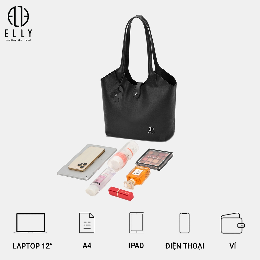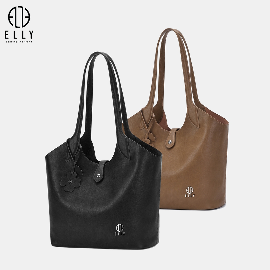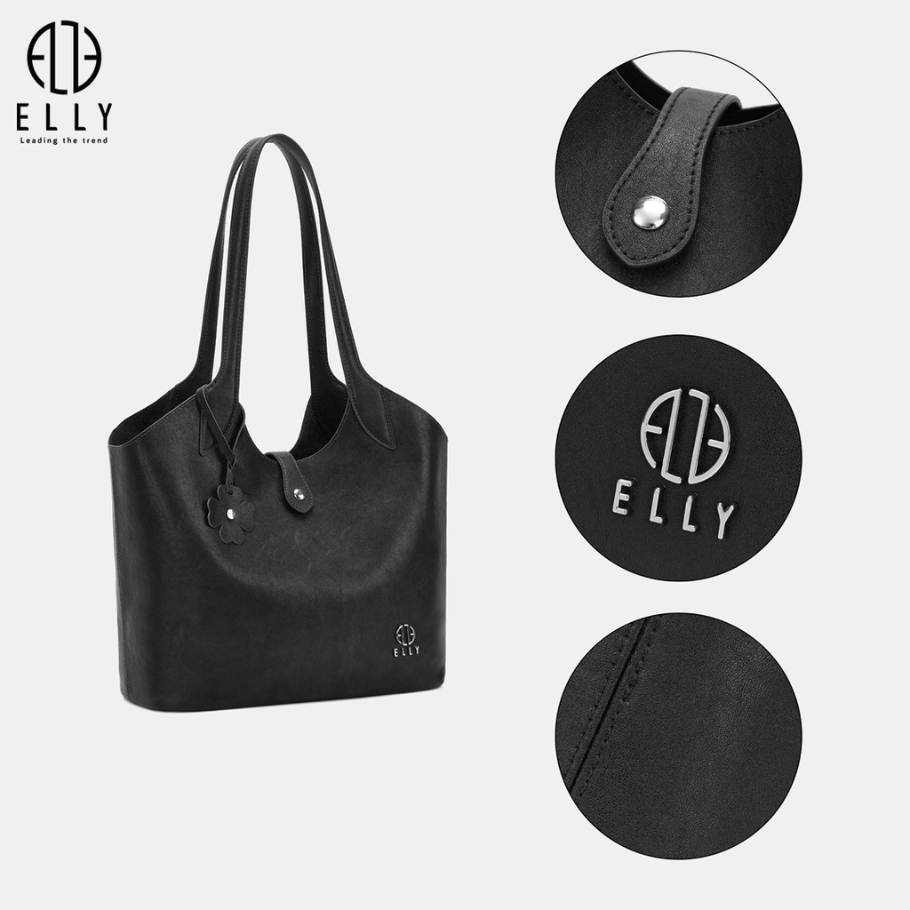 Mặt trước gắn logo ELLY và có dây da nắp bấm kim loại màu bạc, tạo điểm nhấn tinh tế.