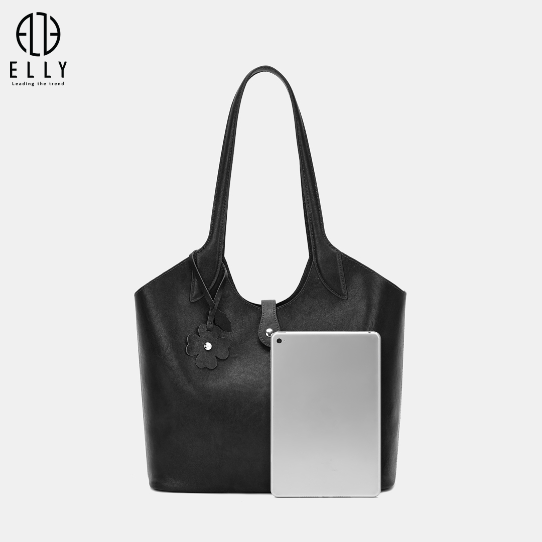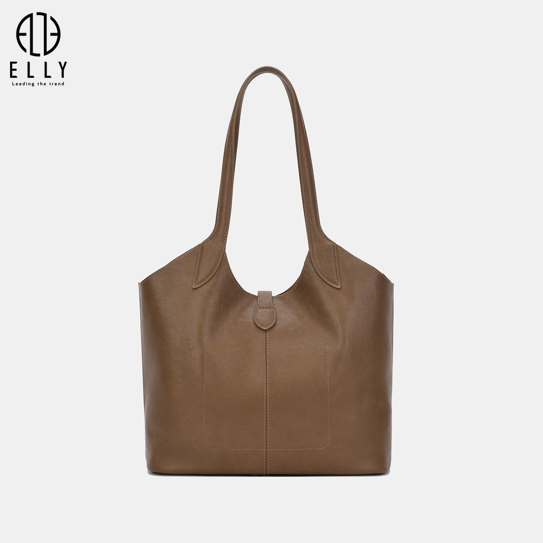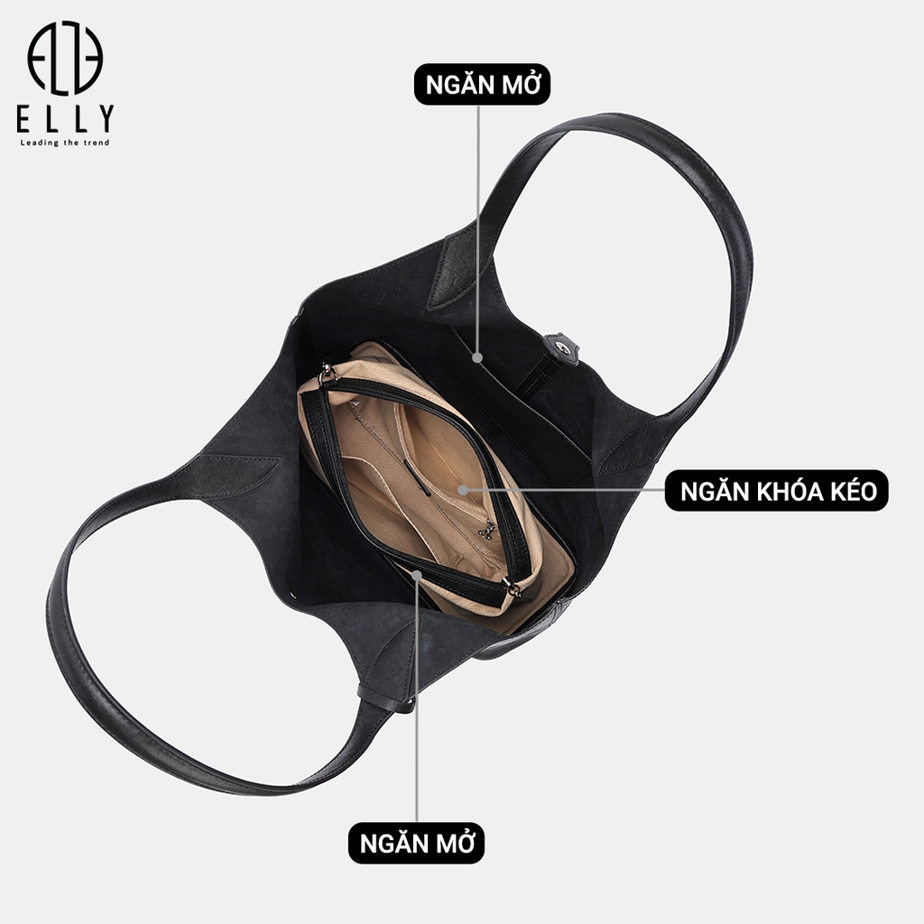 Mặt trước gắn logo ELLY và có dây da nắp bấm kim loại màu bạc, tạo điểm nhấn tinh tế.