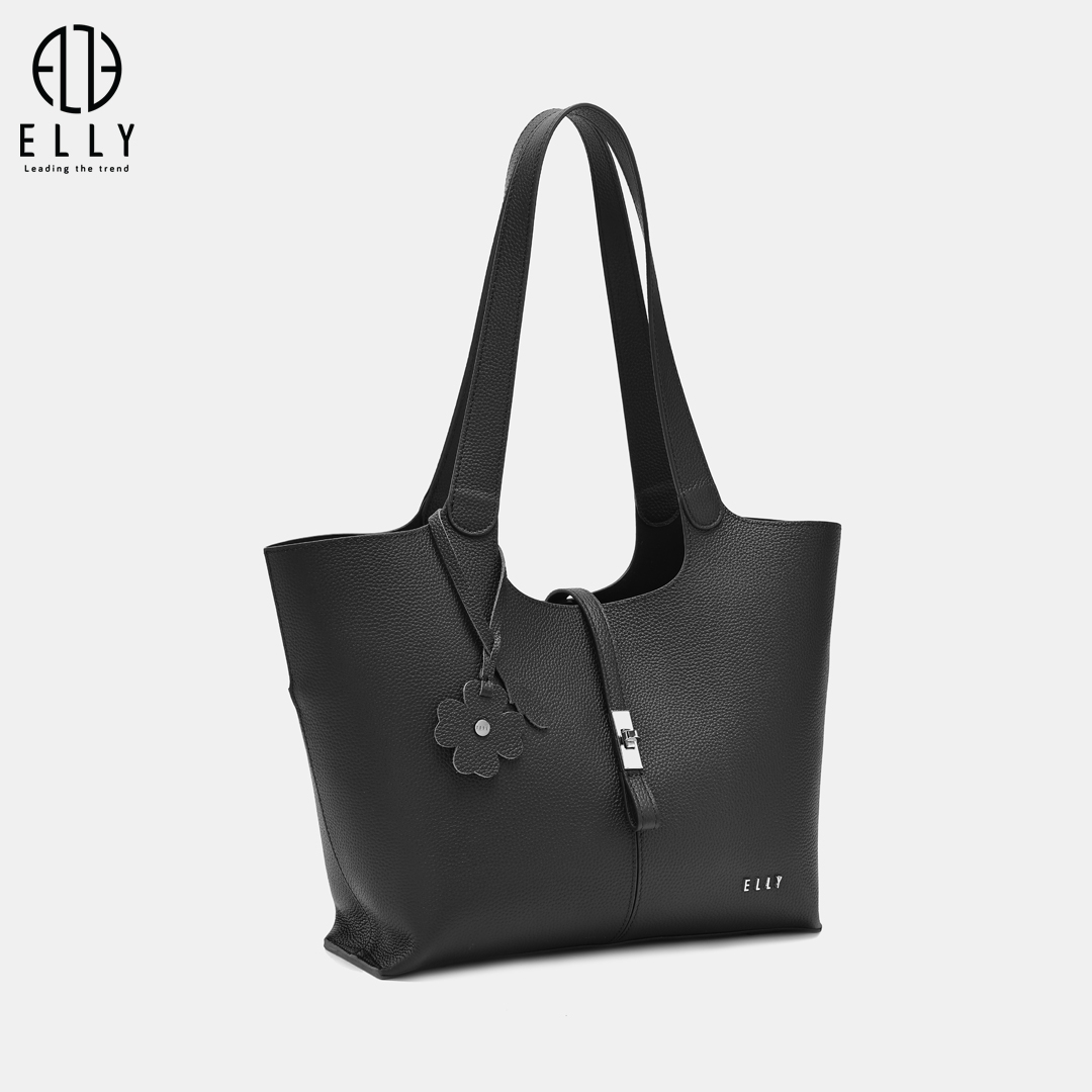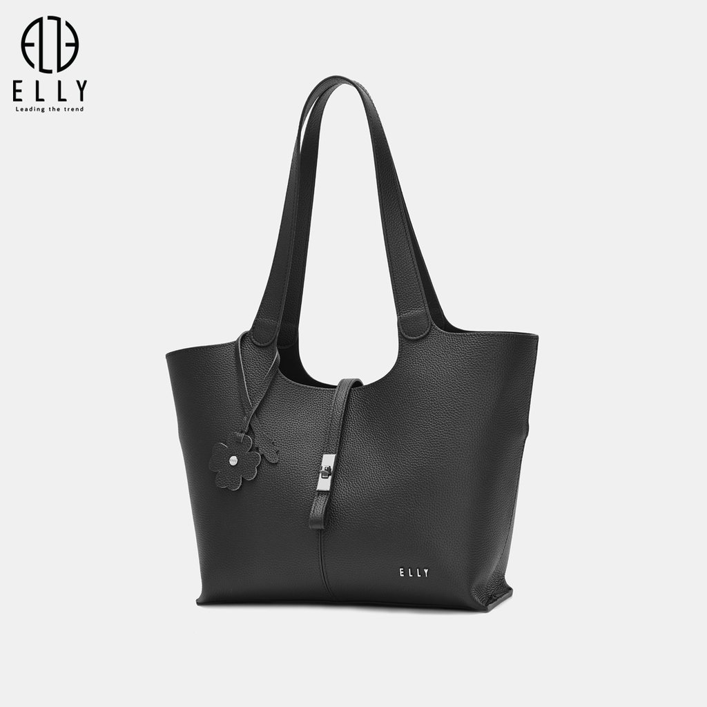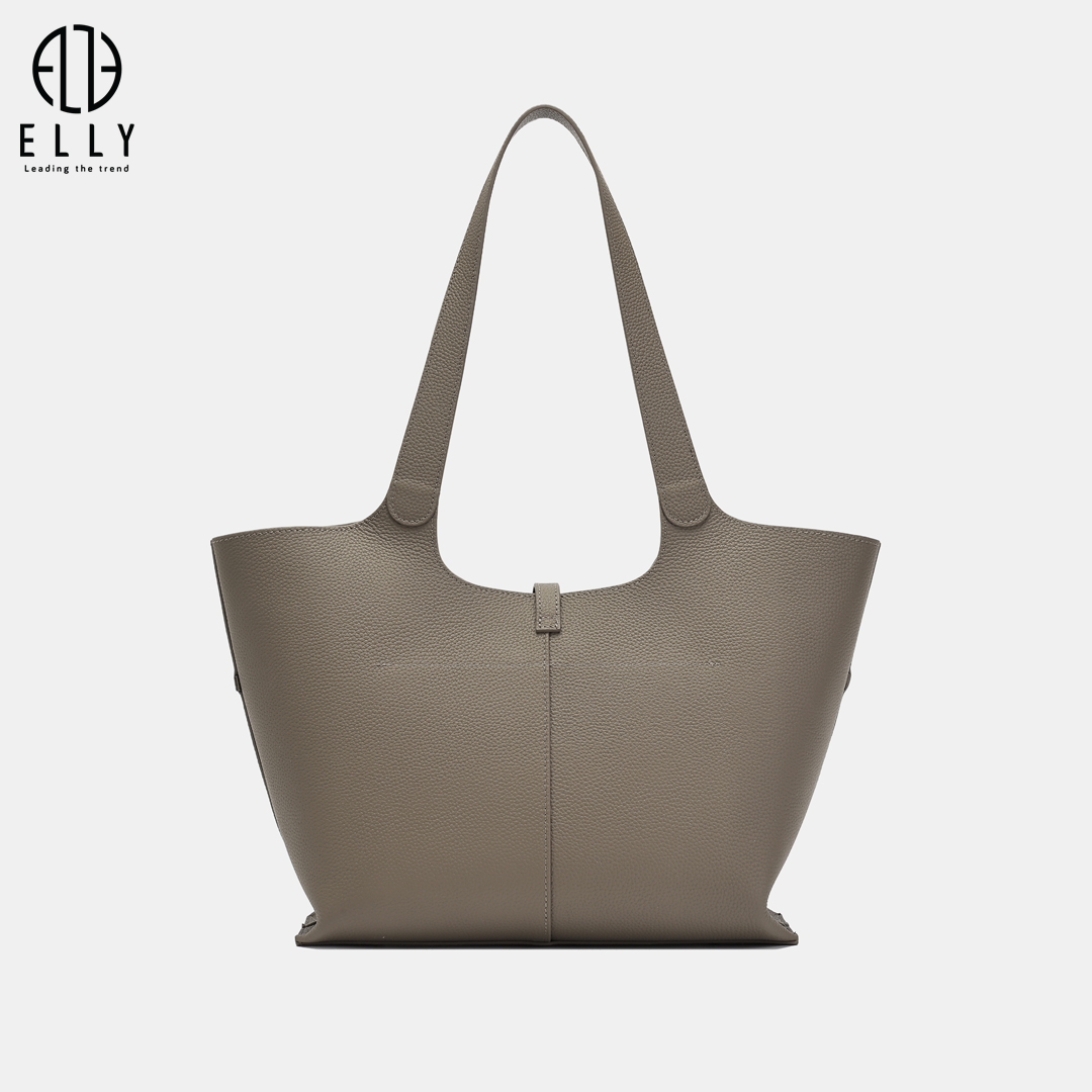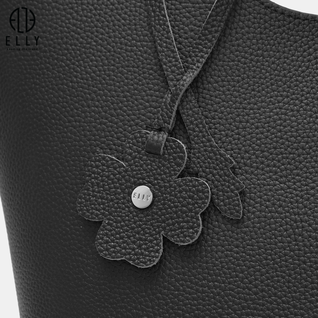 Thiết kế túi da trơn mặt trước in logo ELLY tinh tế, đáy túi được gia cố chân đế da giúp giữ phom và tăng độ bền khi sử dụng.