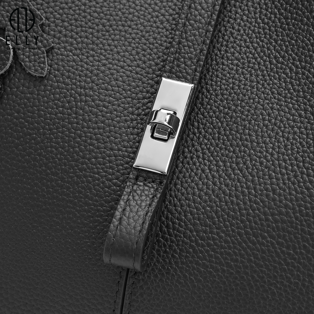 Túi da thật ELLY ET222 sở hữu dáng tote thanh lịch với form đứng hiện đại, phù hợp cho môi trường công sở và dạo phố. Chất liệu da thật vân tự nhiên mang đến cảm giác mềm mại nhưng vẫn bền đẹp theo thời gian. Gam màu trung tính giúp dễ dàng phối cùng nhiều phong cách trang phục khác nhau. Thiết kế tinh giản kết hợp chi tiết khóa và charm da tạo điểm nhấn nhẹ nhàng, tôn lên vẻ nữ tính và sang trọng.