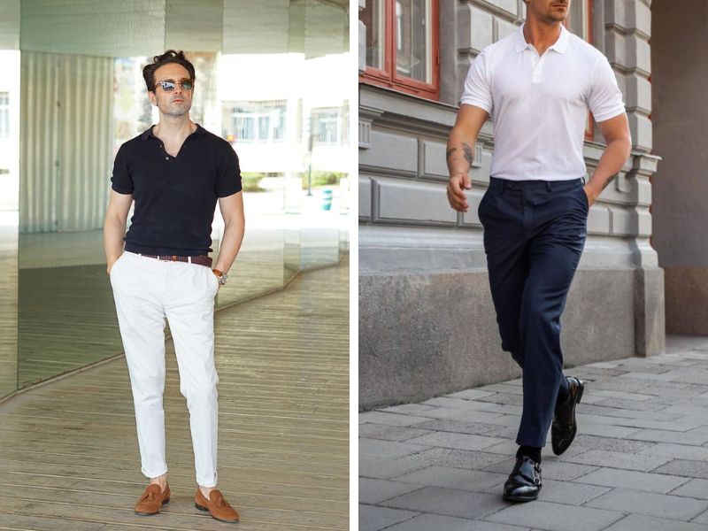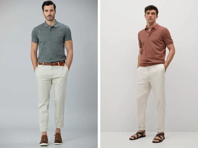 1. Áo polo + quần kaki sáng màu