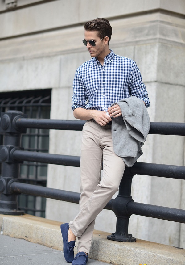 7. Áo sơ mi kẻ + quần kaki
